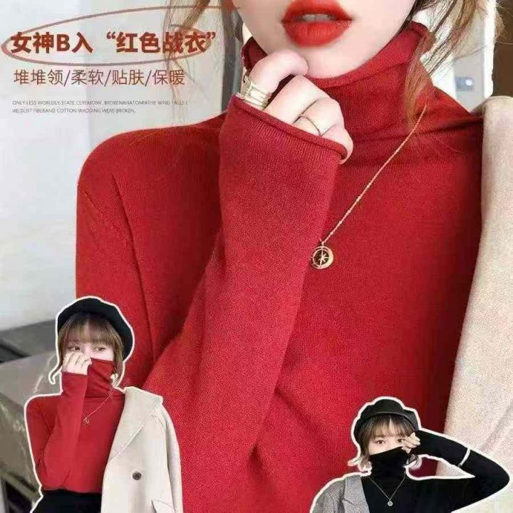 秋冬新款净版简约宽松高领打底外穿包芯纱套头毛衣,独立包装,均码面料软糯...