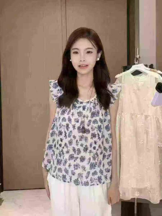 3.8元,女装夏季法式没计感飞飞袖碎花上衣,382件,S-2XL,独立包装,全清3...