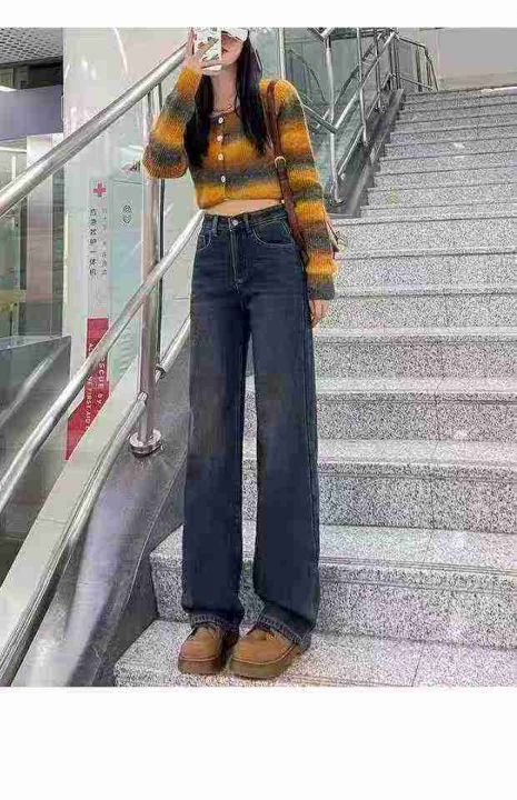 ☕️加绒加厚深色阔腿牛仔裤女高腰显瘦百搭设计感直筒长裤潮445条全清25元...