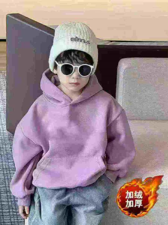 3.9清电商仓回收70件华棉中大童连帽圆领加婴儿绒纯色卫衣,码数90-150。面...