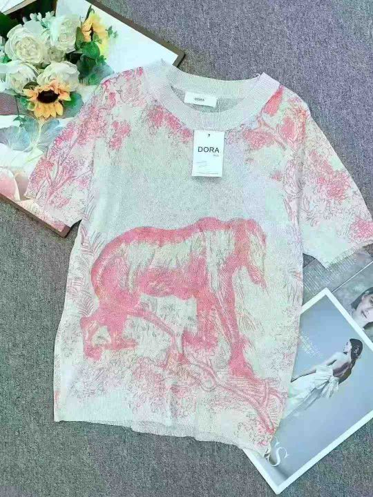 夏季新款冰丝印花设计感字母韩版显瘦针织短袖T恤,独立包装,均码面料软糯...