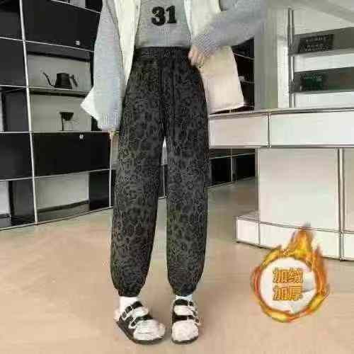 女士豹纹加绒加厚休闲哈伦垮裤.单款二个色 2个码大码数多独立包装 90条左右...