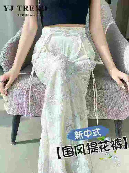 上新全清:15.8一件品牌爆款新中式国风水墨画扎染盘扣冰丝显瘦阔腿拖地裤,...