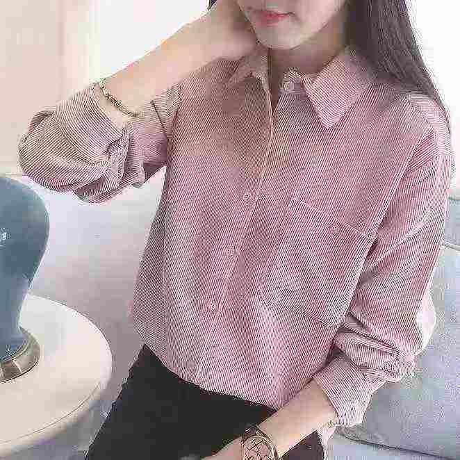 韩版宽松灯芯绒衬衫女2025新款长袖百搭口袋外套潮,独立包装,整款3色(绿...