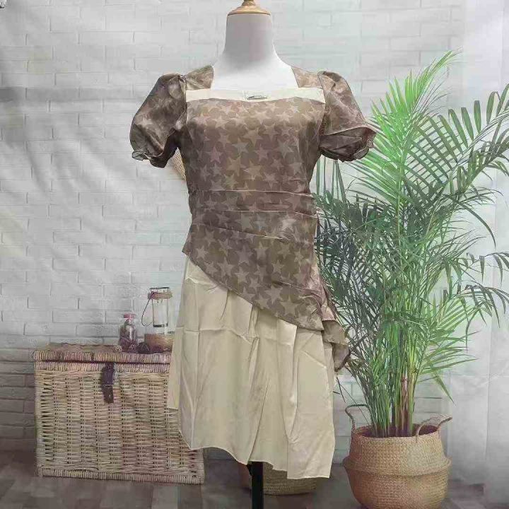 8.8元全清,辣妹方领连衣裙夏季新款茶歇法式设计感星星不规则收腰薄款短裙...