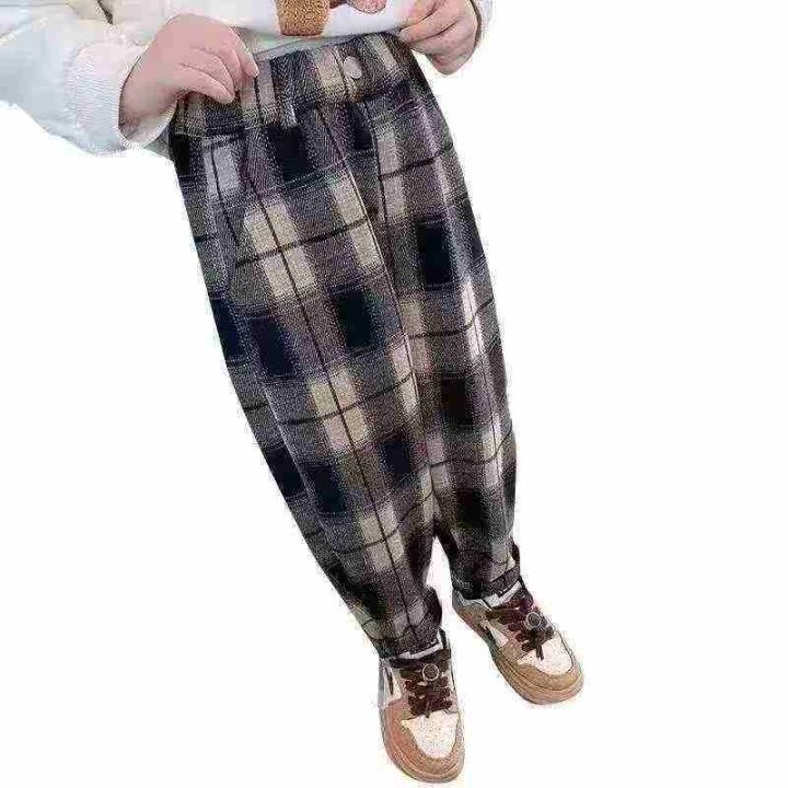 童装格子裤子秋冬款新款儿童冬季加绒卫裤女宝宝一体绒休闲裤260件,尺码90-...