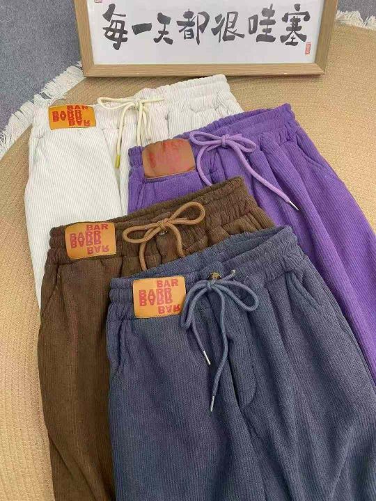 灯芯绒加绒束脚裤60件8.9,面料柔软,加羊羔绒保暖舒适,抽绳松紧腰,有口...