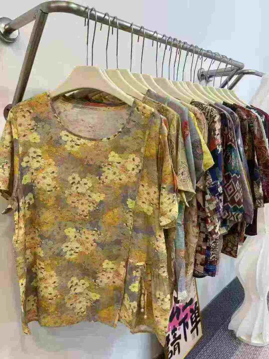 清货价3.5,数量220件左右2025新款减龄遮肚印花百搭衬衣上衣尺码3-5-7码,...