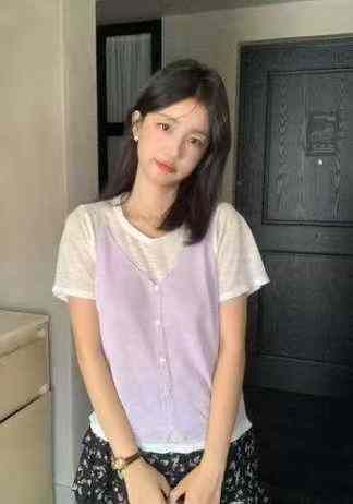 夏季新款韩系宽松叠穿小清新针织开衫吊带背心,独立包装,单款单色,货品新...