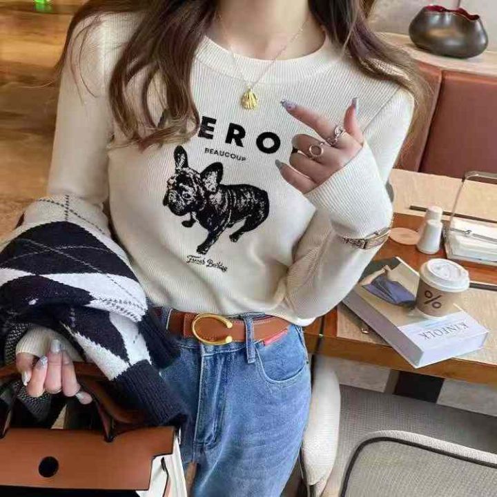 早秋季新款辣妹小狗提花长袖针织套头毛衣,独立包装带吊牌,均码面料柔软舒...