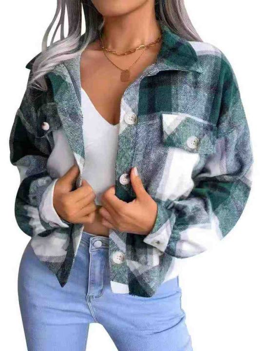 160多件欧美风复古格纹休闲百搭毛呢外套 ,尺码S~2xL,面料厚实品质杠杠的...