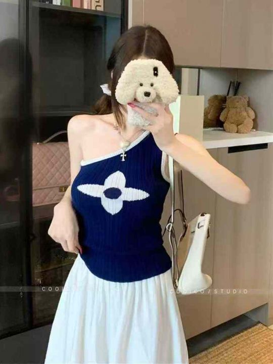 夏季高级感无袖斜肩撞色提花针织吊带小背心,独立包装,均码面料软糯舒适弹...