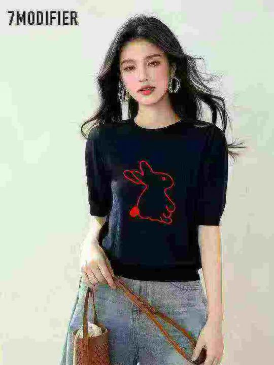 2025夏季新款圆领字母撞色百搭时尚洋气显瘦女装短袖针织衫,574件,原厂原...