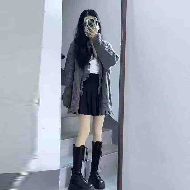 复古设计感流苏毛边长袖针织外套女秋冬新款慵懒风百搭毛衣,均码,独立包装...