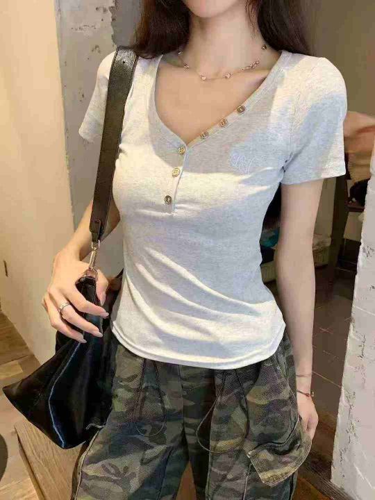 上新全清:8.8一件韩版V领扭扣设计字母刺绣修身显瘦上衣,[爱心]130件左右...
