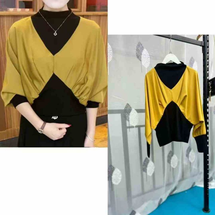 [666]2025新款气质拼接蝙蝠袖上衣802件,码数S-3XL,单款多色,独立包装带...