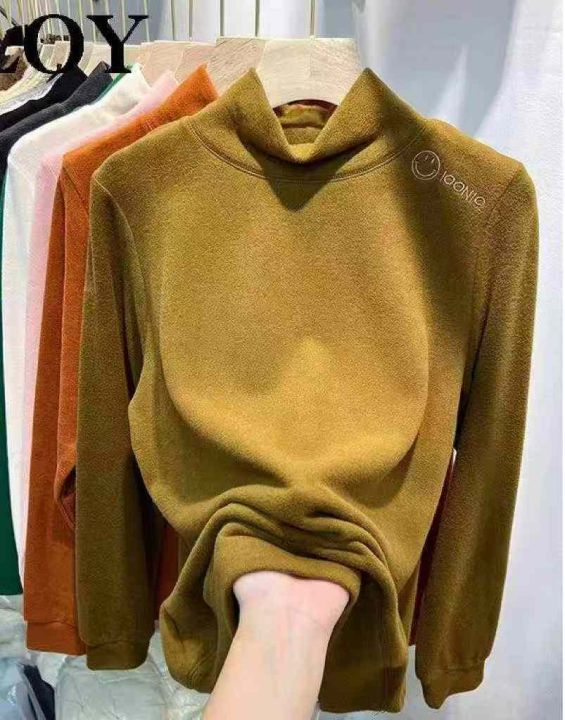 清仓处理5.9210件纯色冬季加绒打底衫女 宽松大版中长款复合绒内搭t恤上衣...