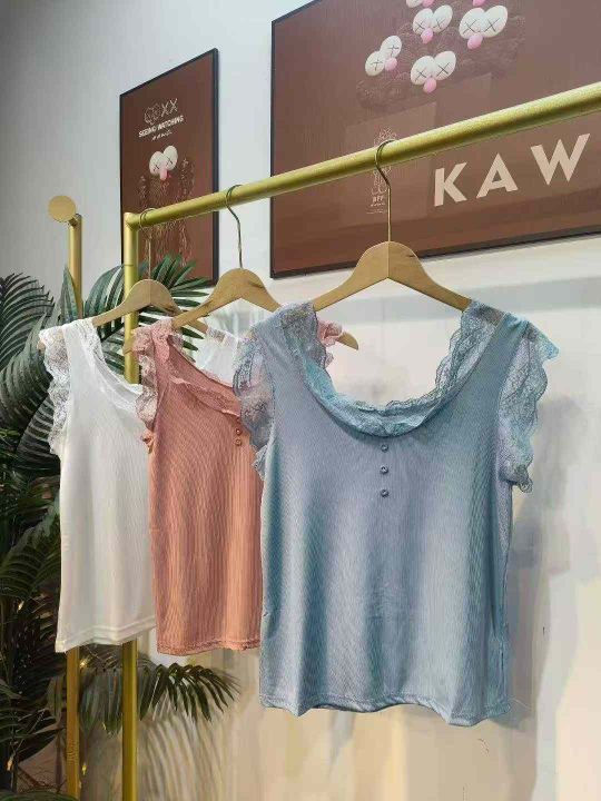 全清4.8纯色蕾丝圆领拼接2025年春秋新款设计感小众上衣 数量50件左右 尺...