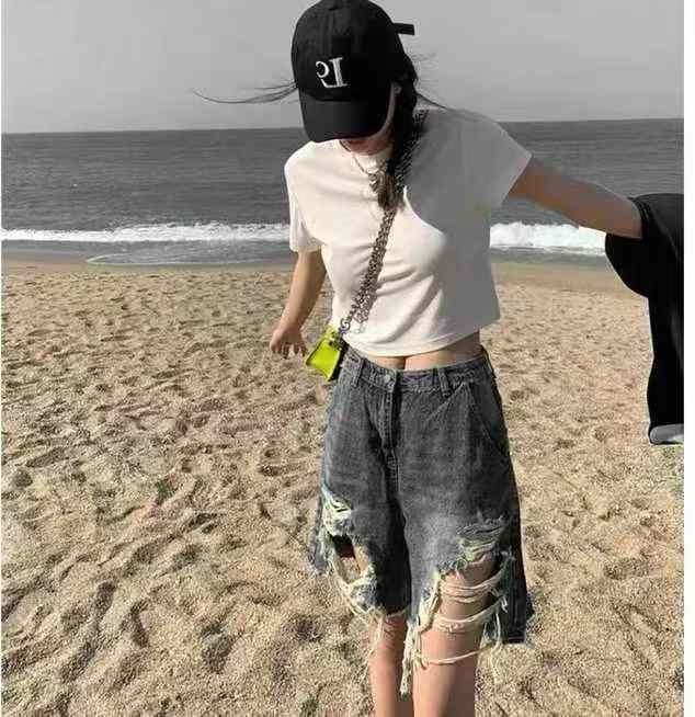 夏季新款女装破洞设计款洗水棉牛仔短裤,独立包装带腰卡,码数S-2XL码,140...