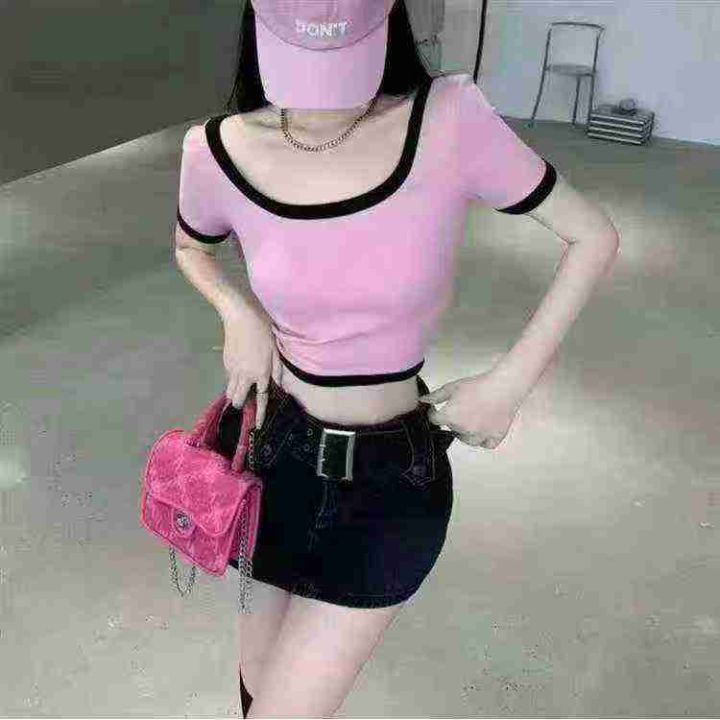 ① 辣妹风纯欲短袖t小众修身显瘦上衣!高弹力!独立包装均码!面料舒适柔软...