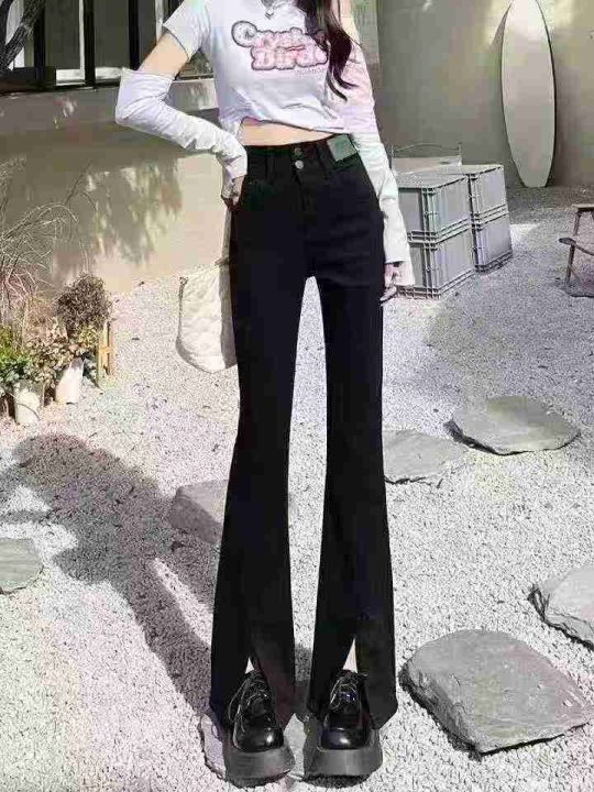 新款高品质高弹力女装洗水棉黑色开叉微喇牛仔裤,独立包装带腰卡,码数 S--...