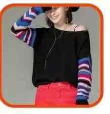 春季复古设计款彩色条纹袖宽松慵懒风包芯纱套头毛衣,独立包装,面料柔软舒...