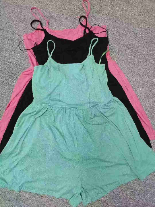 外贸原单针织吊带连体短裤650件,单款三色如图,S~3XL码,面料柔软,有内衬...
