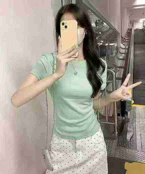 法式甜辣一字肩短袖125件5.8,面料舒适透气,有弹力,褶皱设计,码数1-4码...