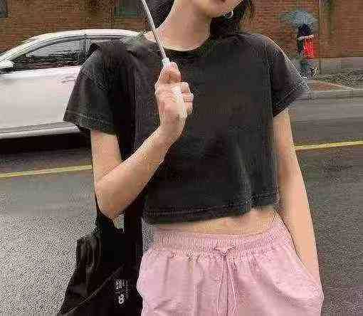 清3.99元/件复古设计感做旧辣妹短款上衣T恤,450件左右,码数XS-2XL,可穿7...