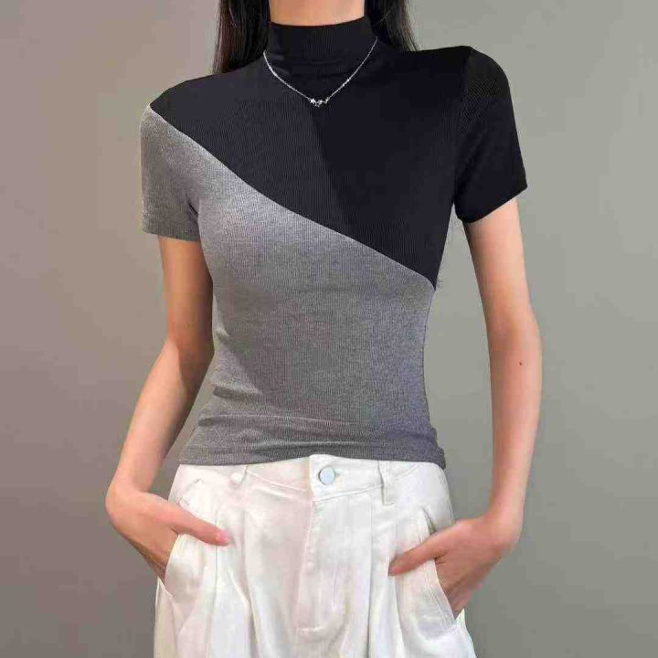 全清5.8元天猫在售款188件左右高品质夏季半高领拼色螺纹短袖T恤,单款单色...