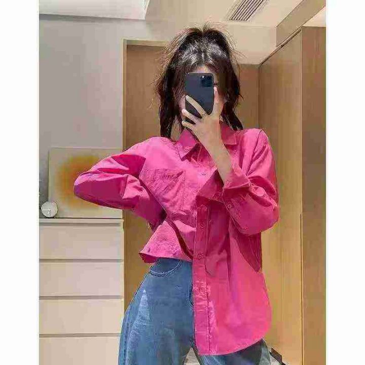 潮牌时髦简约宽松休闲火龙果色女款长袖衬衫.单款单色1-4码独立包装138件全...