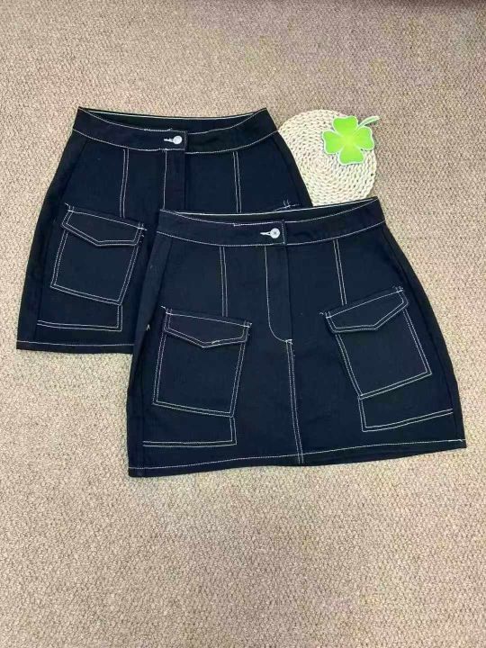 女士新款高腰设计工装牛仔短裙,宽松修身显瘦时尚百搭短裙,数量50条,尺寸...