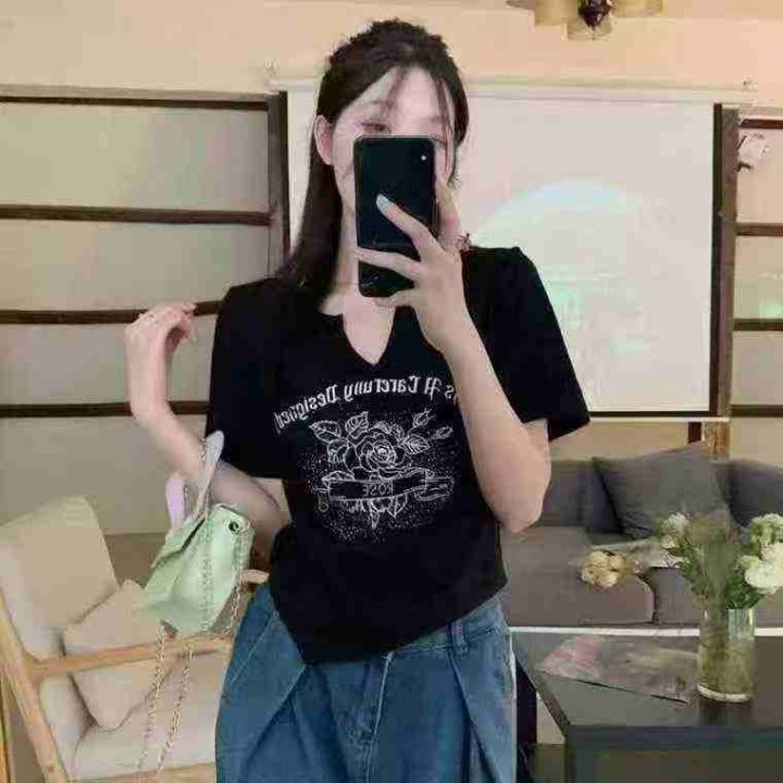 不规则正肩chic港味设计感甜辣女T恤整款两色,有独立包装S-2XL,320件左右...