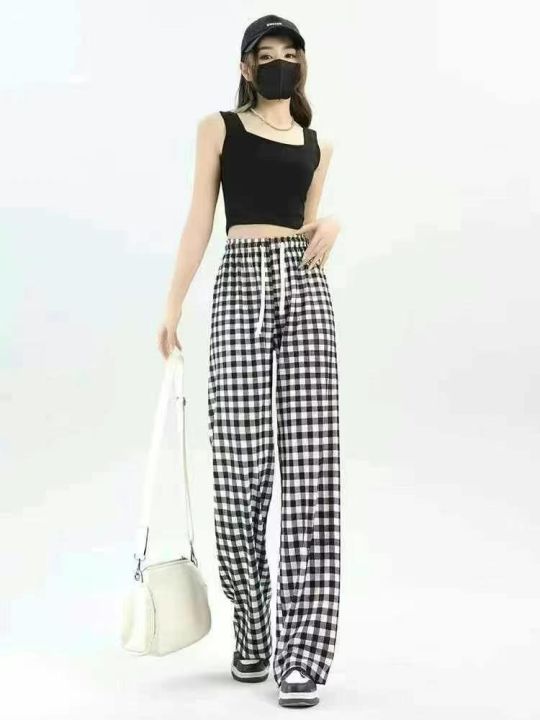 夏季高腰复古时尚格子直筒拖地裤独立包装,S-2XL100件,清4.9...