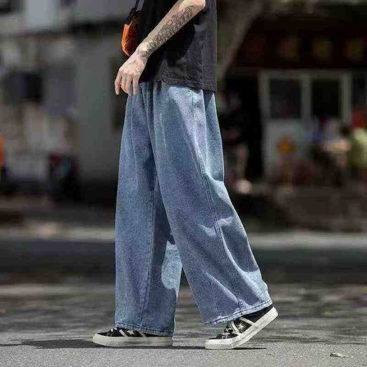 外单品牌剪标春秋季水洗牛仔裤男美式ins复古潮牌纯色宽松百搭直筒喇裤,加...