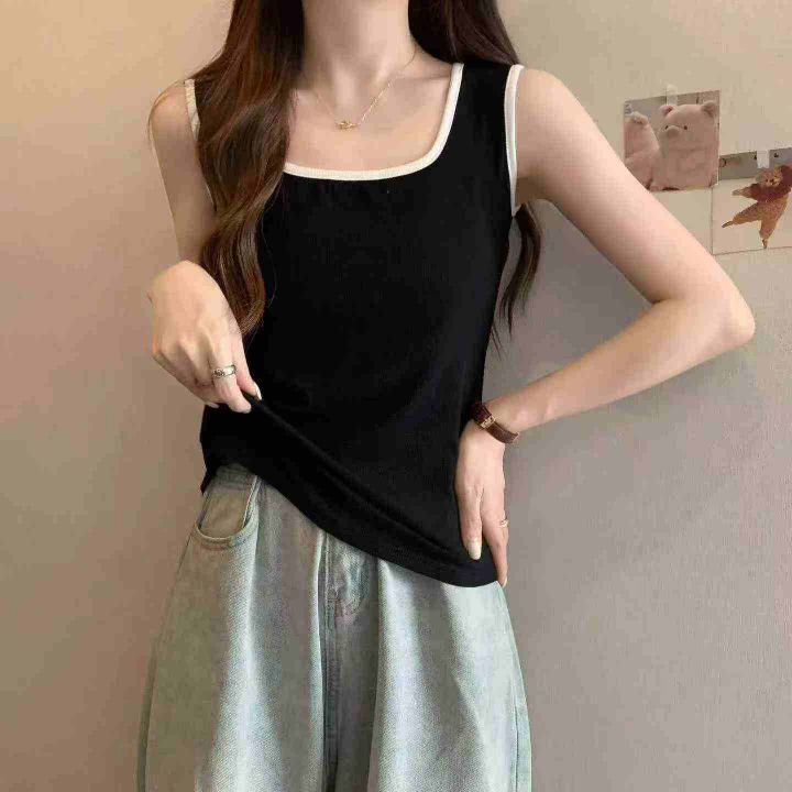 大码辣妹风无袖法式方领背心吊带小衫,整款两色,高弹力,品质好,精品独立...