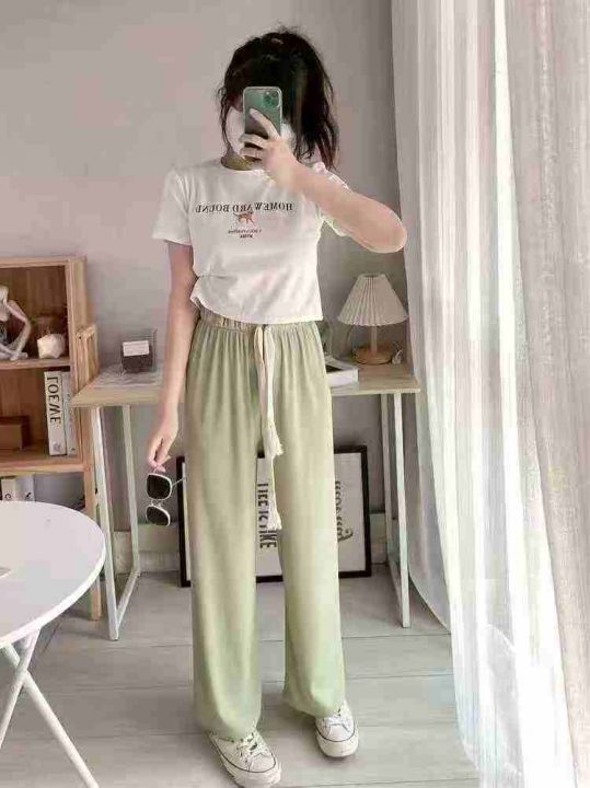 2026春新韩系垂坠感冰丝阔腿裤女夏款高腰显瘦字母抽绳直筒拖地裤数量:440...
