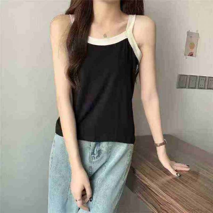 大码辣妹风无袖法式叉色吊带小衫,整款两色,高弹力,品质好,精品独立包装...
