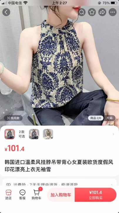 4.9元全清,韩国进口温柔风挂脖吊带背心女夏装欧货度假风印花漂亮上衣无袖...