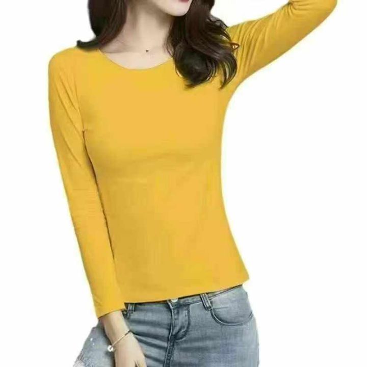 全清5.9 纯棉女装长袖t恤,春秋新款修身圆领上衣,没有黑色。纯色简约内...