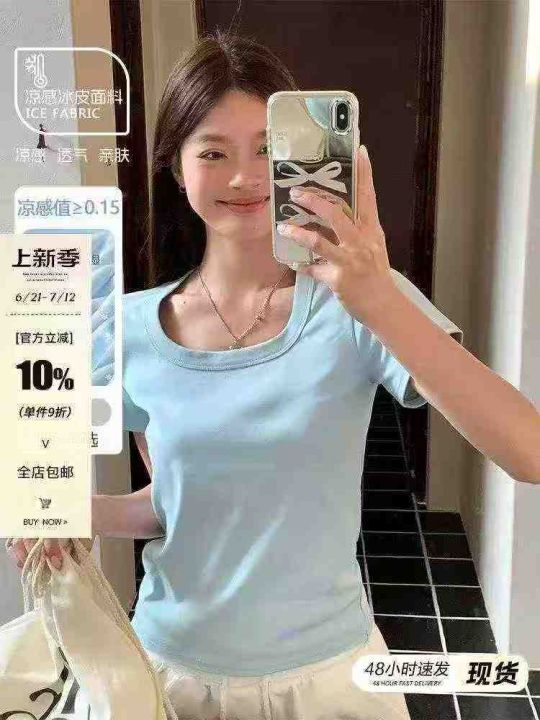 清5.8分货➕0.5靓妹短袖夏季2025新款高级感穿搭正肩修身纯棉小上衣,包边到...