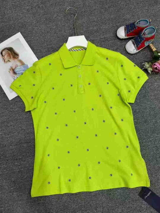 翻领T恤女短袖POLO衫有领体恤妈妈装纯棉带领绣花上衣,独立包装,码数M-2XL...