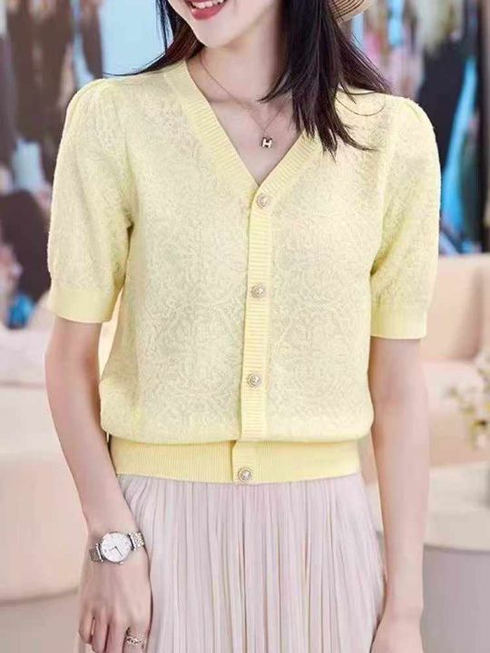 夏季新款女装法式V领小清新针织开衫,独立包装,均码面料柔软舒适透气,111...