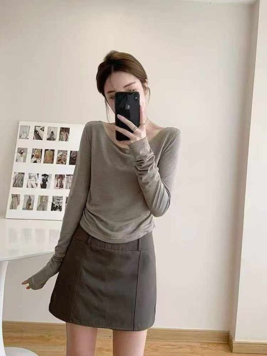 春季新款高弹力韩版设计款收腰显瘦针织长袖小衫,独立包装,均码面料软糯舒...