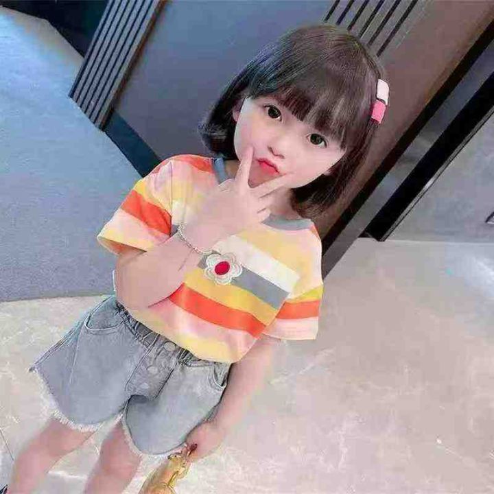 淘宝在售女童彩虹条纹短袖t恤,夏季中大童半袖体恤女孩可爱上衣,120-160码...