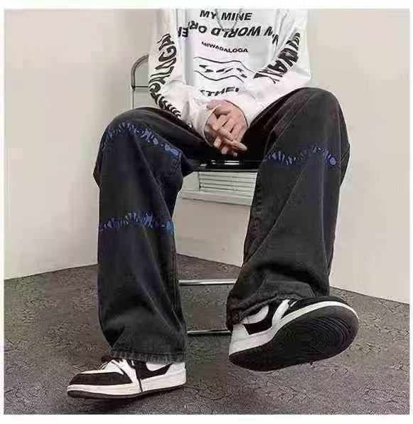 全清9.9元天猫在售款300件左右高品质男装港风潮牌痞帅刺绣阔腿牛仔裤,单款...