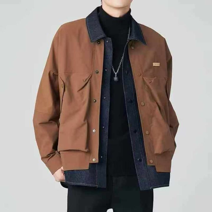 [月亮]:19.8清74件(不分货)[月亮]:美式潮牌牛仔拼接假两件设计感外套[...