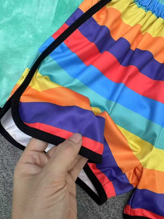 全清2.9亚马逊跨境外贸童装夏季新款,炸街彩虹条短裤男女童2025夏季宝宝舒...