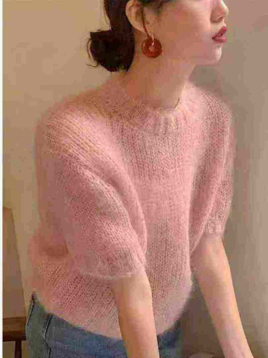 紫色毛织衫女装秋装新款韩系氛围感穿搭宽松百搭七分袖,面料柔软,独立包装...