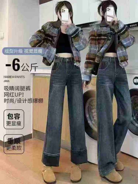 加绒阔腿显瘦高腰复古宽松直筒牛仔裤,单款单色,独立包装,数量1700,XS-2...